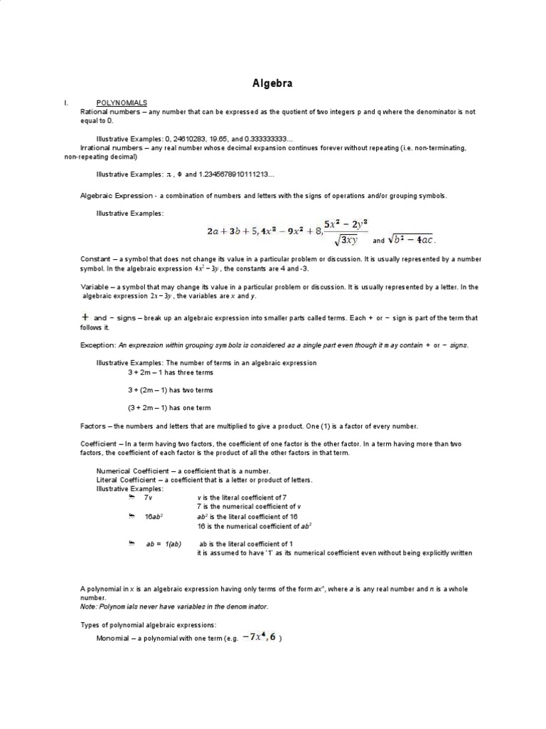 Aljebra Reviewer Pdf Fraction Mathematics Factorization